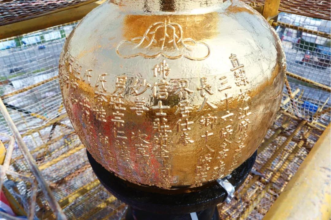 ? ? ? ? 龍華塔是上海地區(qū)保存最完好的宋代樓閣式塔,明人馮遷譽(yù)其為“千年飛塔”。舊時(shí),“秋江塔影”與“龍華晚鐘”同樣蜚聲海內(nèi)外。龍華塔頂端塔剎葫蘆,上一次貼金箔修繕是在1984年,歷經(jīng)時(shí)間和風(fēng)雨的洗禮,斑駁銹蝕,金箔缺損嚴(yán)重。本次保養(yǎng)維護(hù)過(guò)程中,維修人員為塔剎葫蘆重貼金箔,再現(xiàn)璀璨金光。