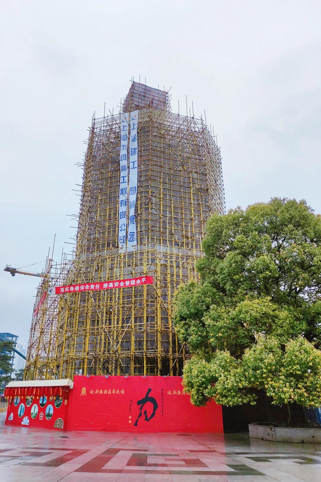 ? ? ? ??為了在龍華塔保養(yǎng)維護(hù)過(guò)程中,腳手架不與龍華塔有任何部位接觸,腳手架搭建方案經(jīng)過(guò)縝密設(shè)計(jì)與嚴(yán)格審查后,才得以實(shí)施。腳手架總重量達(dá)100多噸,從搭建方案設(shè)計(jì)到搭建完成,共耗時(shí)近4個(gè)月,占據(jù)了本次龍華塔保養(yǎng)維護(hù)項(xiàng)目總工期的近一半。