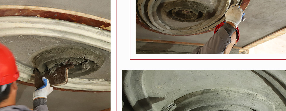 今年的競賽項目是以傳統(tǒng)工藝制作天花線腳和燈圈。賽程分為三天,難度大,時間緊。由于我們抽簽為11號,最后才輪到我們測量和繪圖,因此時間異常緊迫。測量完后自行準備模具、導軌,第二天再到現(xiàn)場在4小時內(nèi)準備線腳、燈圈糙坯制作。第三天需要在4小時扯制線腳、燈圈,可謂是分秒必爭。