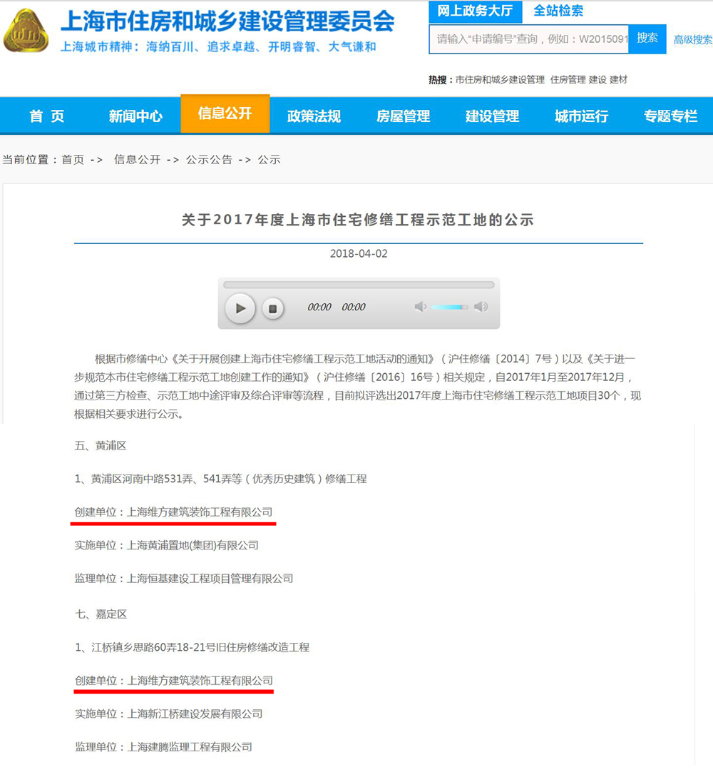 ? ? ? ?近日,由市修繕中心主辦的“2017年度上海市住宅修繕工程示范工地”評選結(jié)果出爐,自2017年1月至2017年12月,通過第三方檢查、示范工地中途評審及綜合評審等流程,由本公司施工的“黃浦區(qū)河南中路531弄、541弄等(優(yōu)秀歷史建筑)修繕工程”、“嘉定區(qū)江橋鎮(zhèn)鄉(xiāng)思路60弄18-21號舊住房修繕改造工程”兩個項目喜獲“2017年度上海市住宅修繕工程示范工地”入圍公示。(http://www.shjjw.gov.cn/gb/node2/n4/n14/n355/u1ai176945.html)